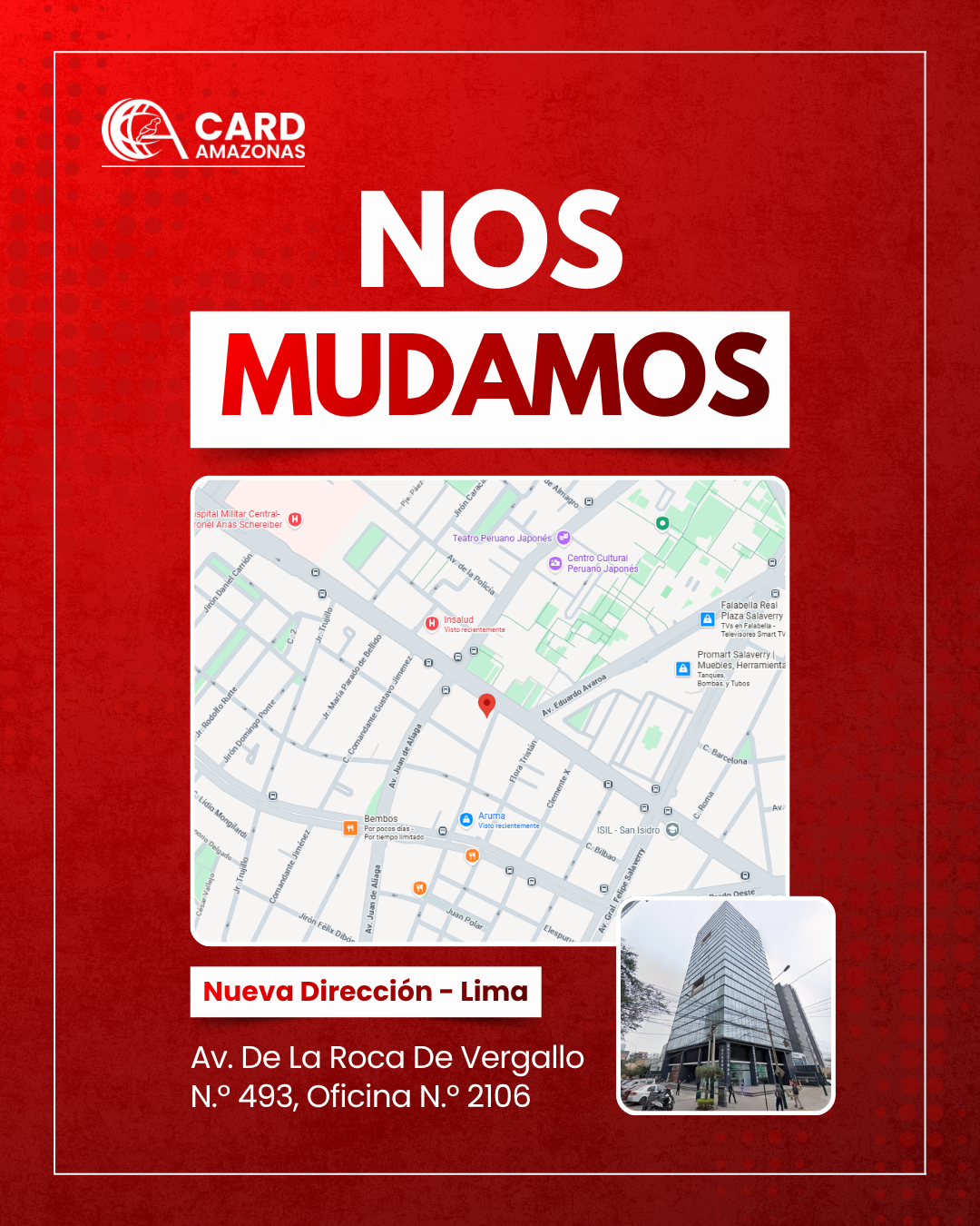 🏢 A partir de ahora, los atenderemos en nuestra nueva sede ubicada en: Av. De La Roca De Vergallo N.º 493, Oficina N.º 2106