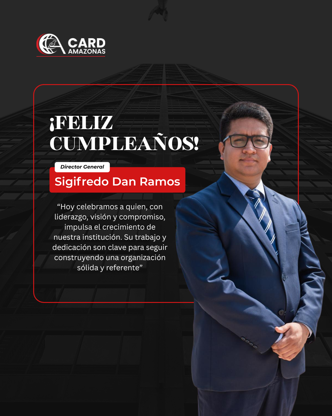 Reconocemos su liderazgo, visión y compromiso, pilares fundamentales en el crecimiento y consolidación de CARD Amazonas.
