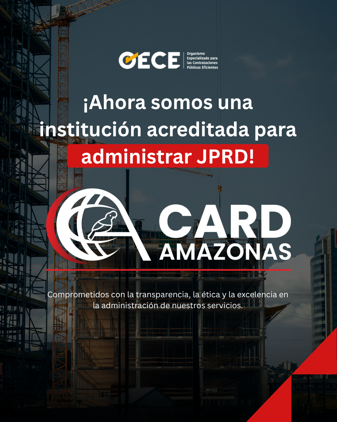 CARD Amazonas ha sido acreditado como institución para administrar JPRD, conforme al marco normativo vigente y bajo los estándares establecidos por el sistema de contrataciones públicas.